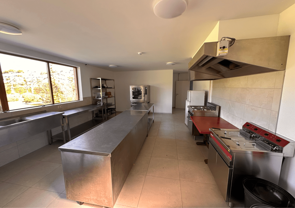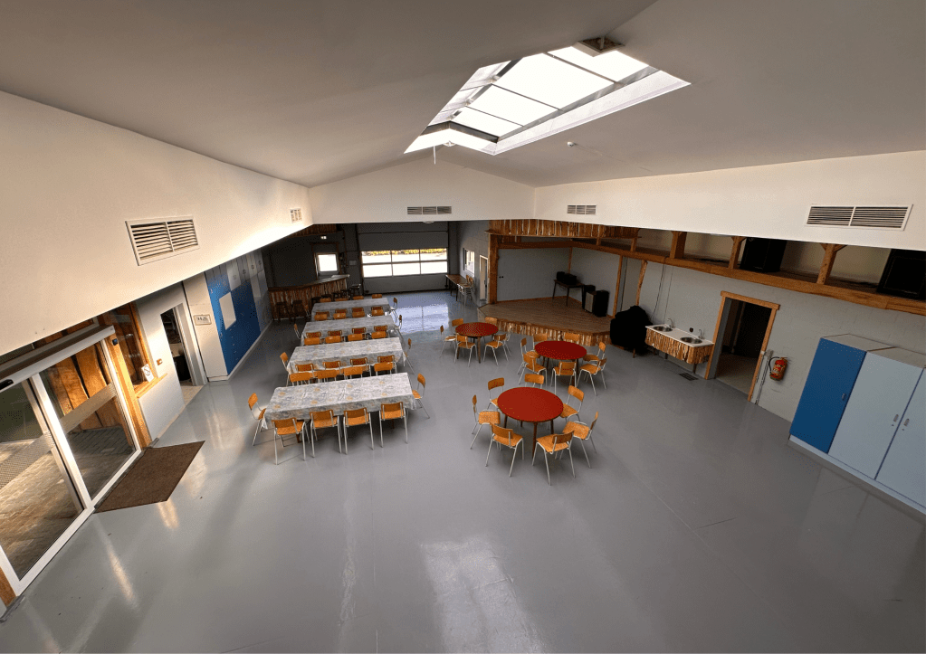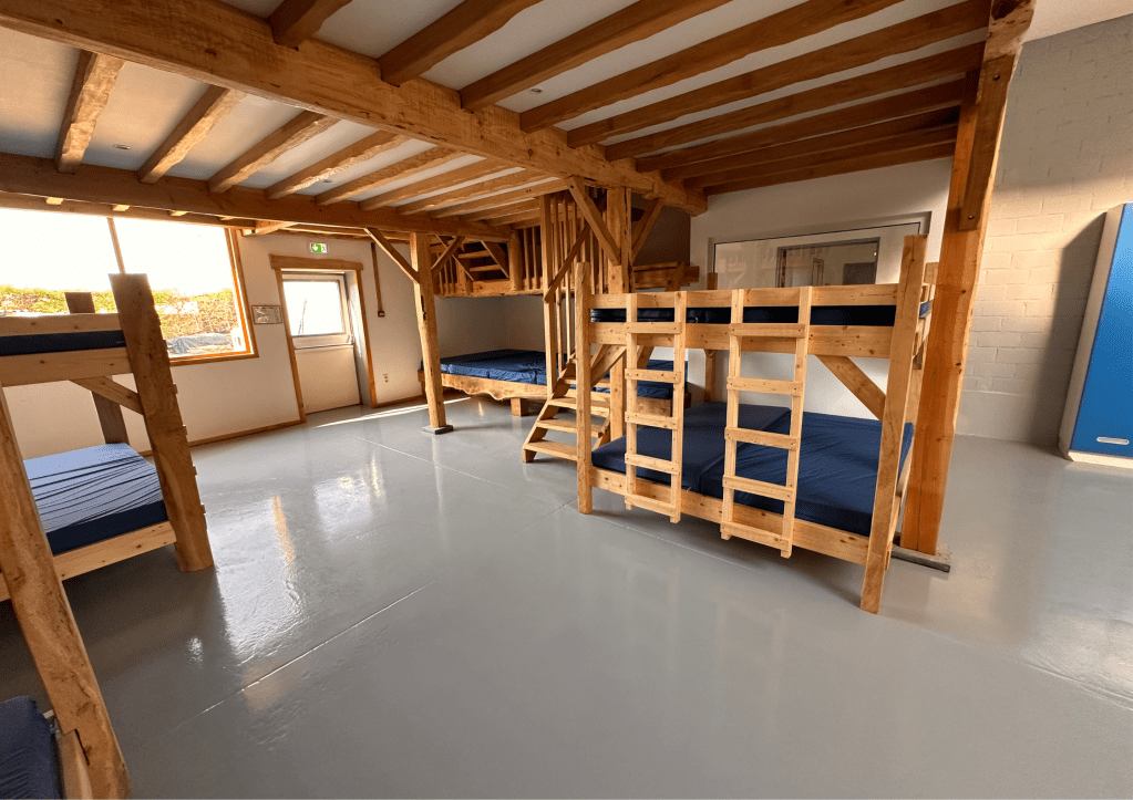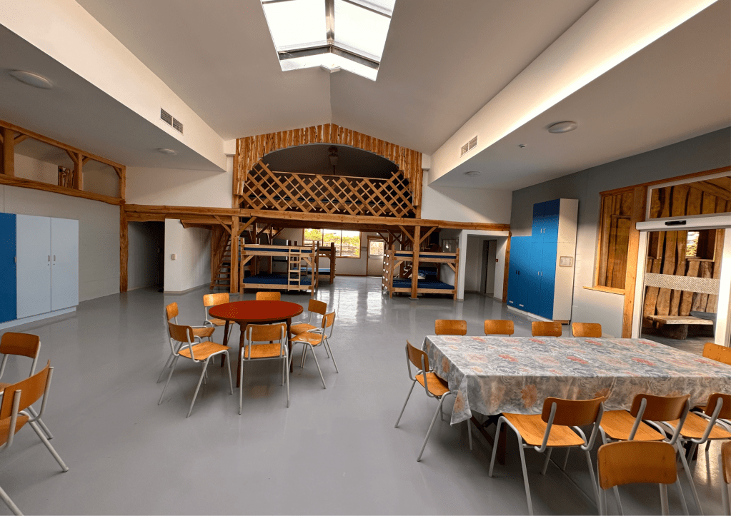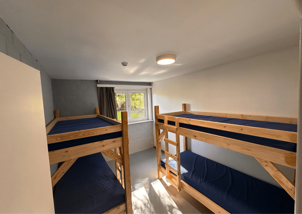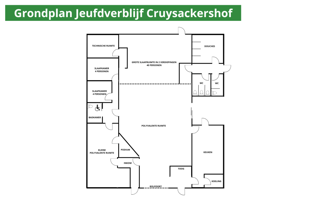 Het jeugdverblijf zelf is uitgerust met 51 slaapplaatsen, een industriële keuken, gescheiden toiletten en douches,… De inrichting van het gebouw kan je zien op onderstaande overzicht:
