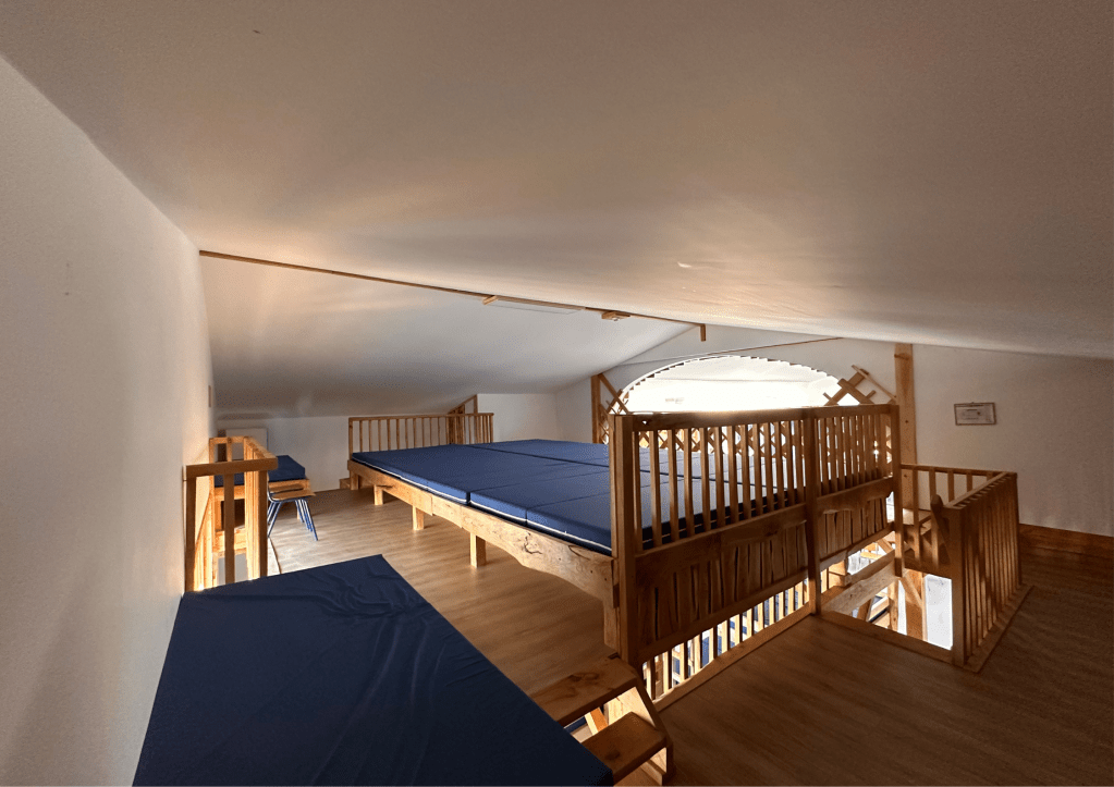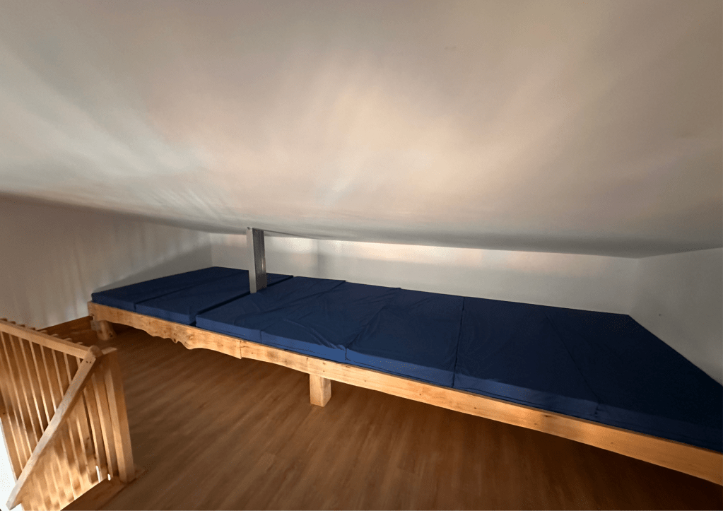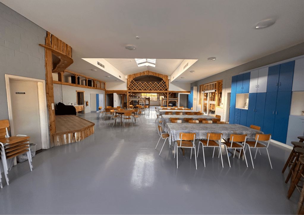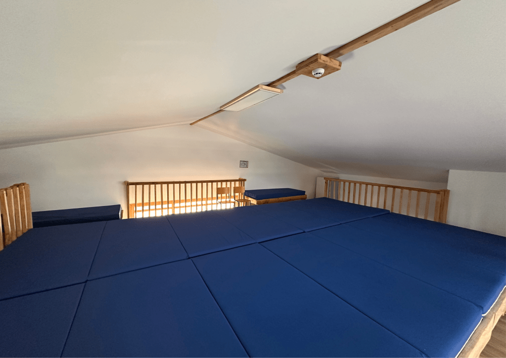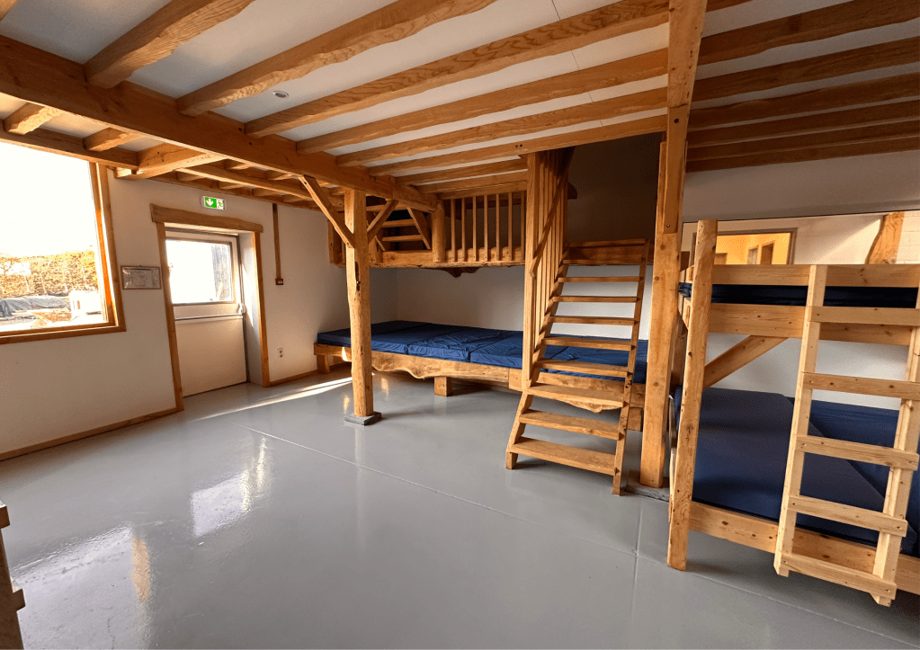 Het jeugdverblijf zelf is uitgerust met 51 slaapplaatsen, een industriële keuken, gescheiden toiletten en douches,… De inrichting van het gebouw kan je zien op onderstaande overzicht: